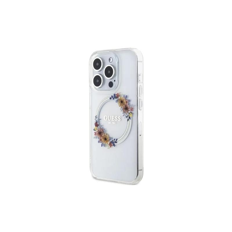 GUESS futerał do IPHONE 15 Pro Max kompatybilny z MagSafe GUHMP15XHFWFCT (Flowers Wreath) transparentny