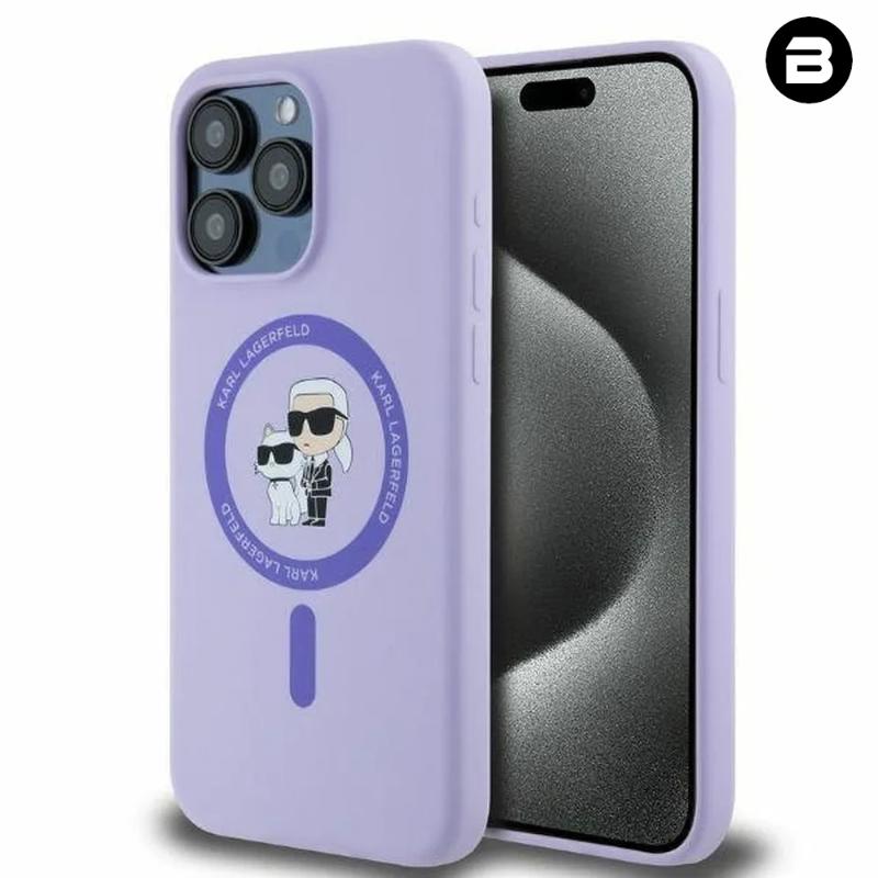 KARL LAGERFELD futerał do IPHONE 15 Pro Max kompatybilny z MagSafe KLHMP15XSCMKCRHU (Silicone KC Body Ring) fioletowy