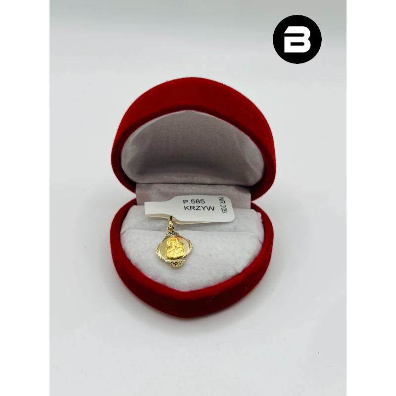 Oferujemy złotą zawieszkę próby 585, będącą odnawianym wyrobem jubilerskim, który zachowany jest w stanie jak nowym.