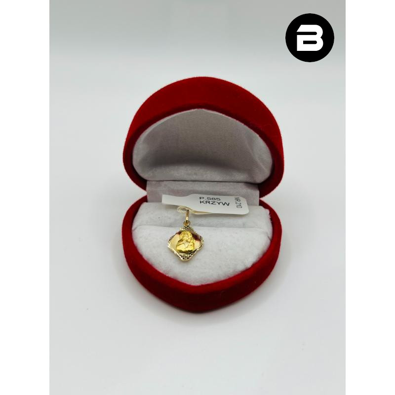 Oferujemy złotą zawieszkę próby 585, będącą odnawianym wyrobem jubilerskim, który zachowany jest w stanie jak nowym.