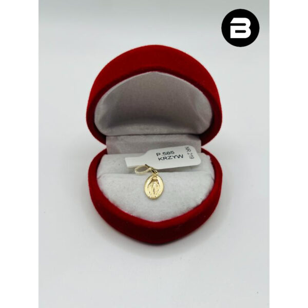 Oferujemy złotą zawieszkę próby 585, będącą odnawianym wyrobem jubilerskim, który zachowany jest w stanie jak nowym.